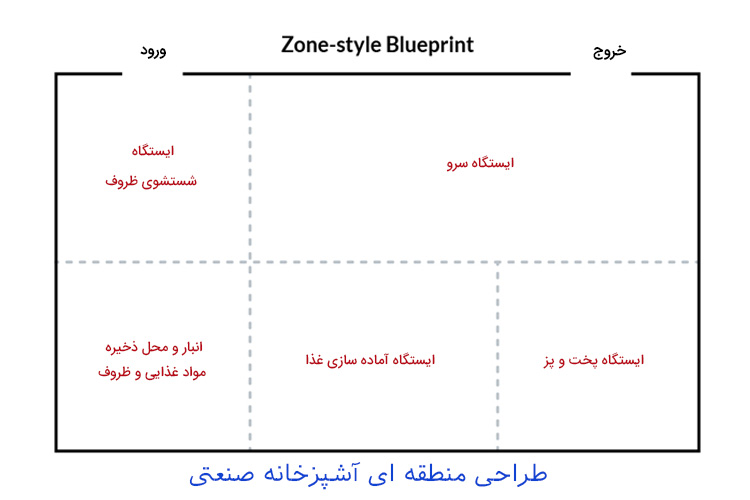 3 - طراحی آشپزخانه صنعتی به سبک منطقه ای یا ایستگاه